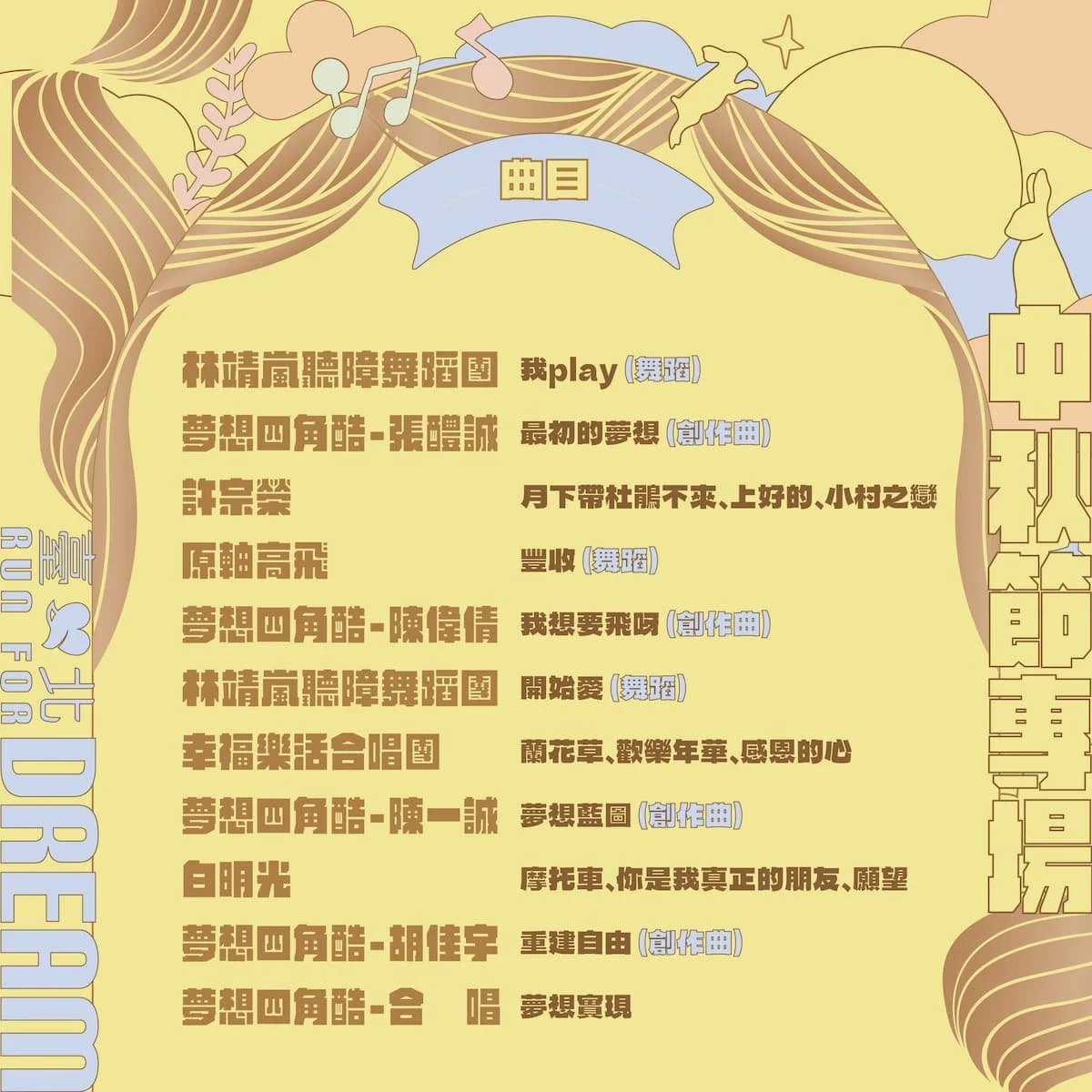 9月29日,於大安森林公園的「中秋節專場」暨「閉幕場」,在感動人心的演出及觀眾喝采中,璀璨落幕,為「臺北RunForDream」2023年一系列演出,劃下完美句點。